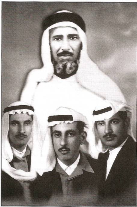 الصورة تجمع المرحوم أحمد الغنام وأولاده من اليسار محمد، عبدالعزيز، يوسف الغنام